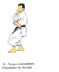 6ème séquence : Gedan barai à 180°, Oi zuki : 1 seconde de pause (figures 19, 20, 21).